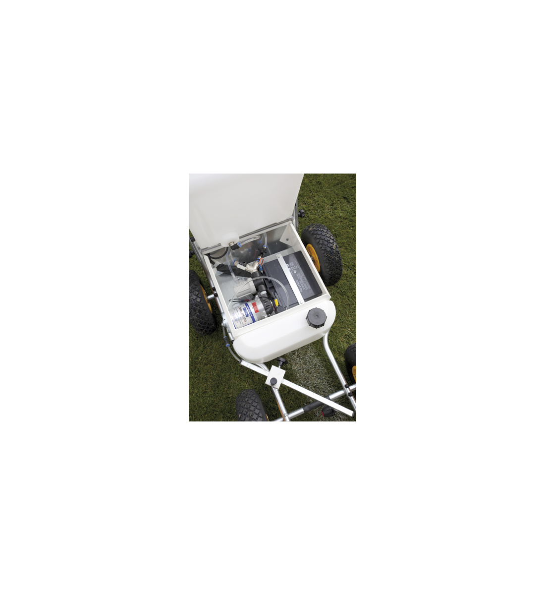En elektrisk linjeringsmaskin med två tankar för enklare användning.